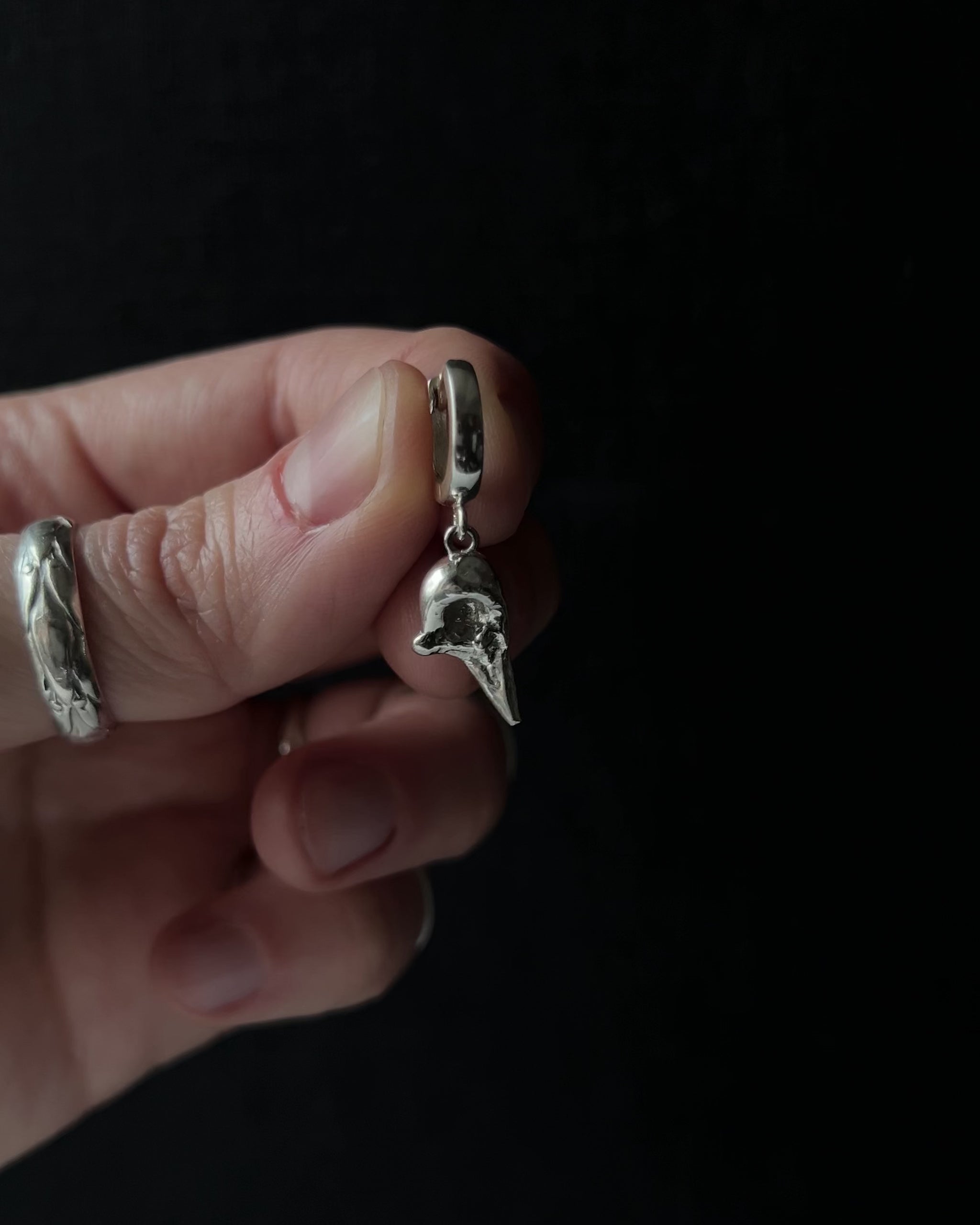 These hoop earrings are designed to be worn as singles or paired together to create your own combinations. Each dangle has its own character, allowing you to mix textures, moods, and symbols depending on how you wear them. Subtle on their own, expressive when combined.