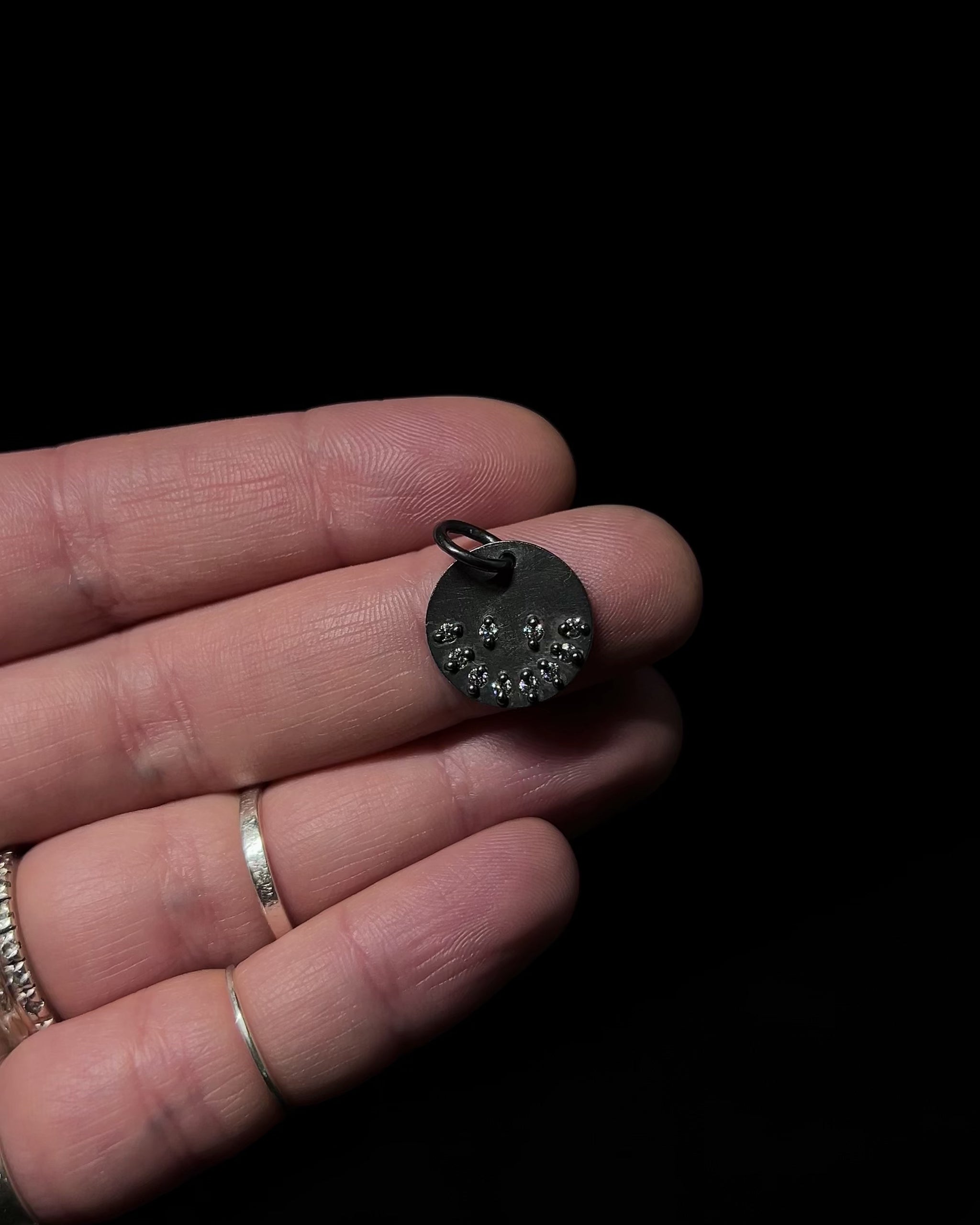 A small smile captured in oxidised silver and scattered CZ crystals—